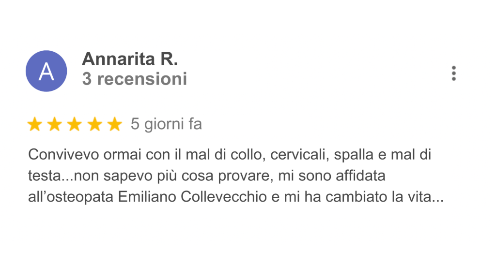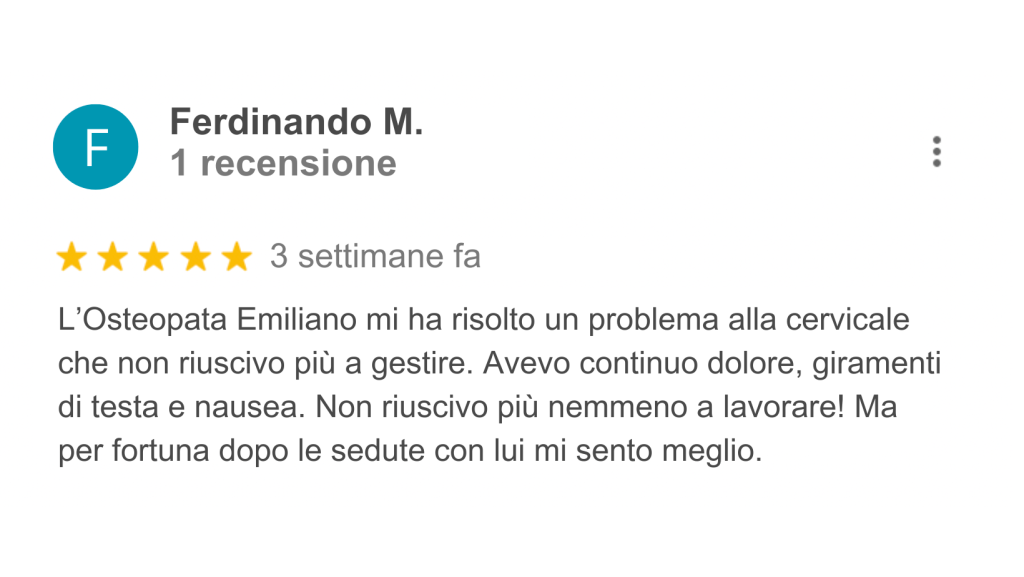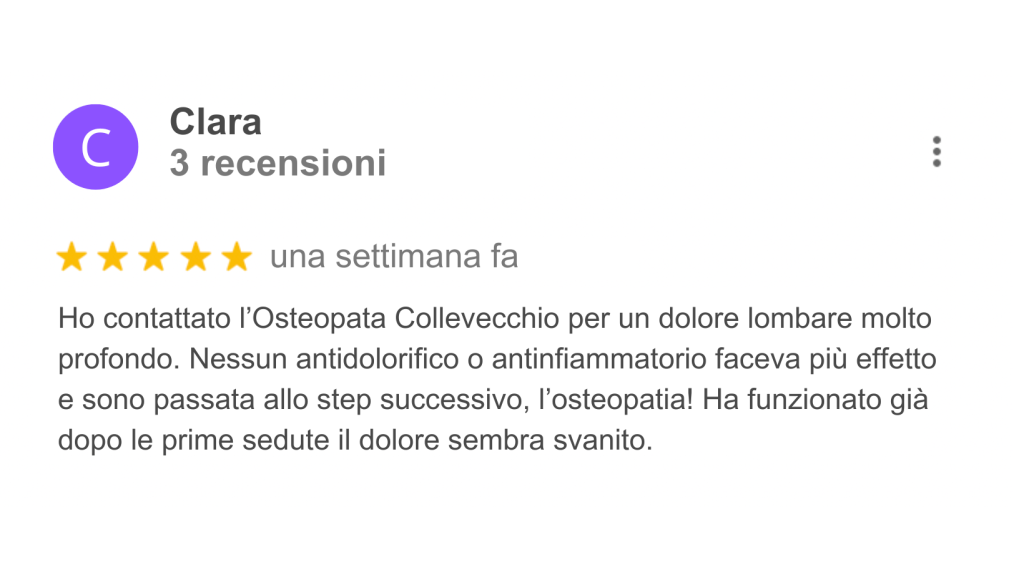 Il mio trattamento osteopatico si differenzia dagli altri proprio per questa motivazione, non mi concentro sul punto del dolore, ma vado all’origine per poter guarire in maniera definitiva e non avere recidive.
